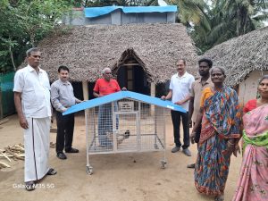 As part of the programme, 150 temporary night shelters were distributed to 150 identified SC families to support and promote backyard poultry rearing activities. The programme witnessed active participation from panchayat officials and village elders, reflecting strong community involvement. The input distribution programme was coordinated by Dr. M. Shanmugam.